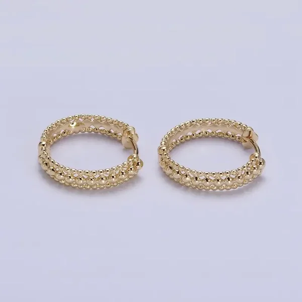 Gold Triple Round Beaded Hoop Earrings